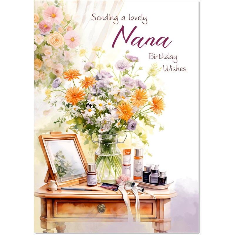 doodlecards Nana Birthday Card Dressing Table Bouquet Medium Size with Plain Envelope