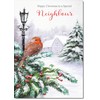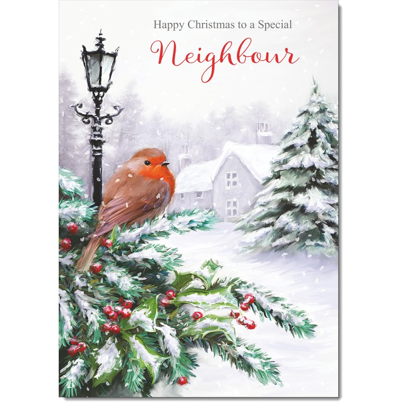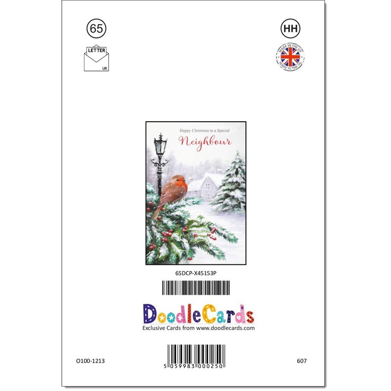- DOODLECARDS ⭐ Neighbour Christmas Card Robin by Lamp Medium Size Christmas Card for Neighbour with Plain Envelope