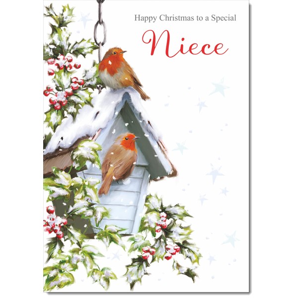 - DOODLECARDS ⭐ Niece Christmas Card Two Robins in Snow Medium Size Christmas Card for Niece with Plain Envelope