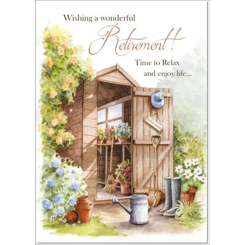 doodlecards Retirement Card Garden Shed Large A4 Size with Plain Envelope