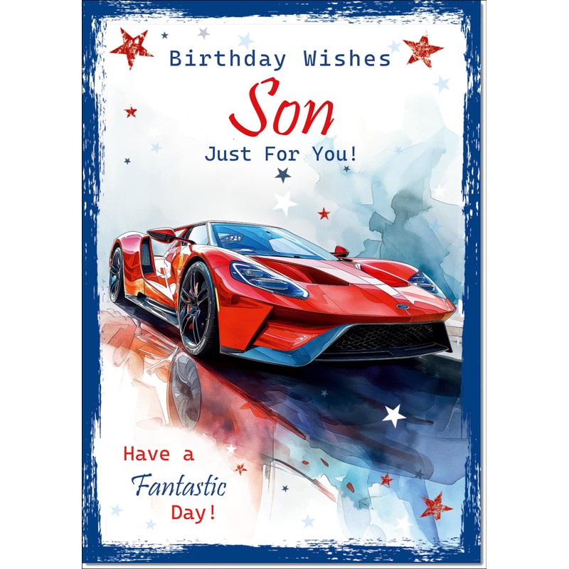 doodlecards Son Birthday Card Ford GT40 Supercar Medium Size with Plain Envelope