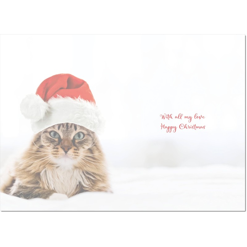 doodlecards Wife Christmas Card Cat with Santa Hat Medium Size Christmas Card for Wife with Plain Envelope