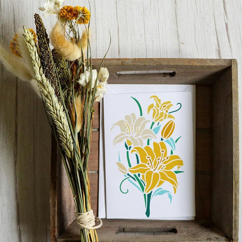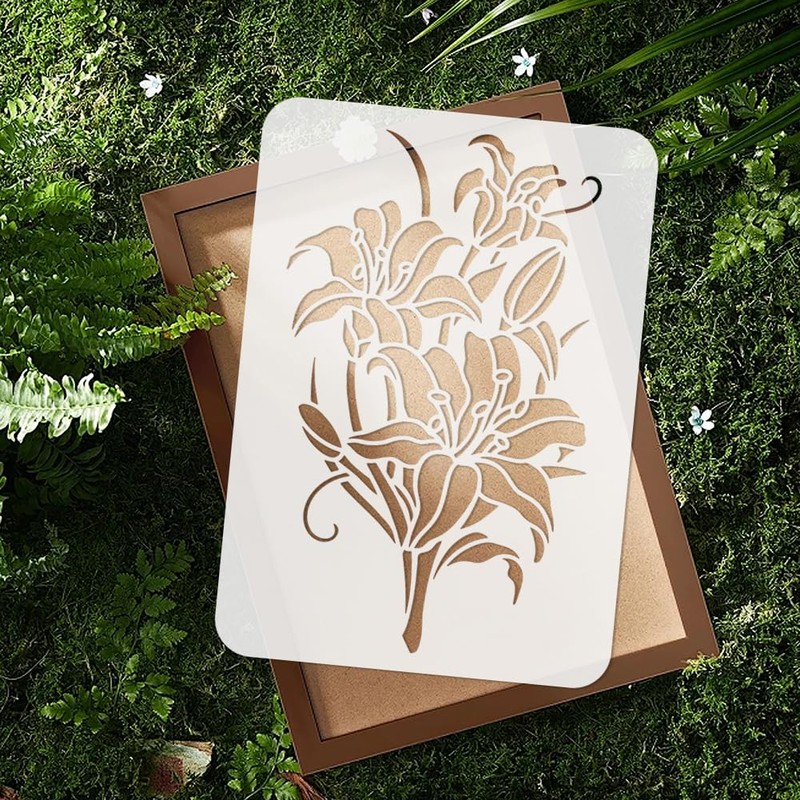 DOODLREAM 30 x 30cm Lily Wall Stencil Templates, Reusable Plastic Blooming Lily Stencils for Painting on Wood Wall Floor Tile Fabric Glass Furniture Flowers DIY Home Decor Template