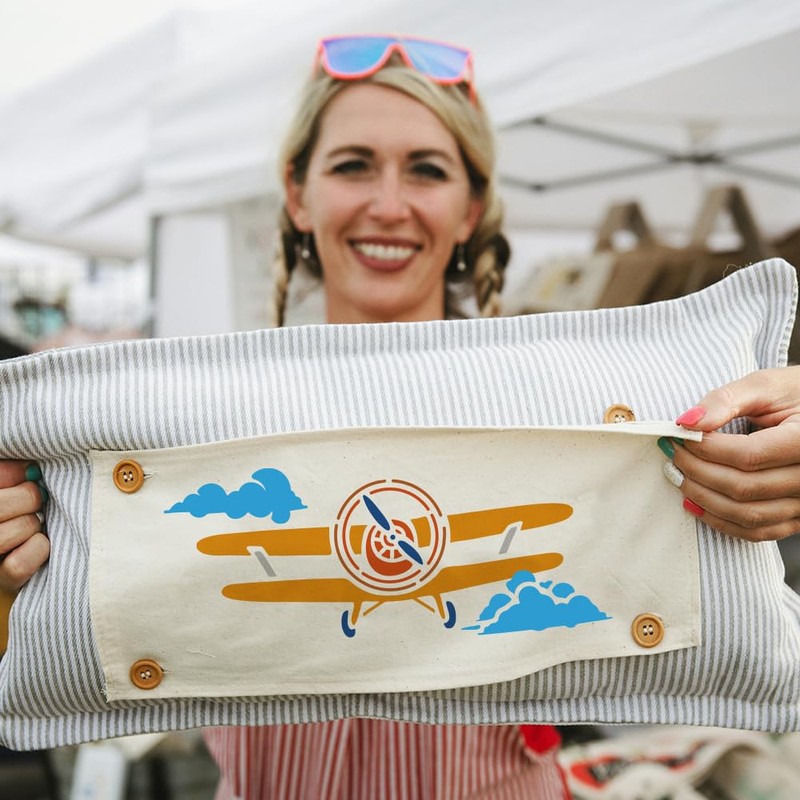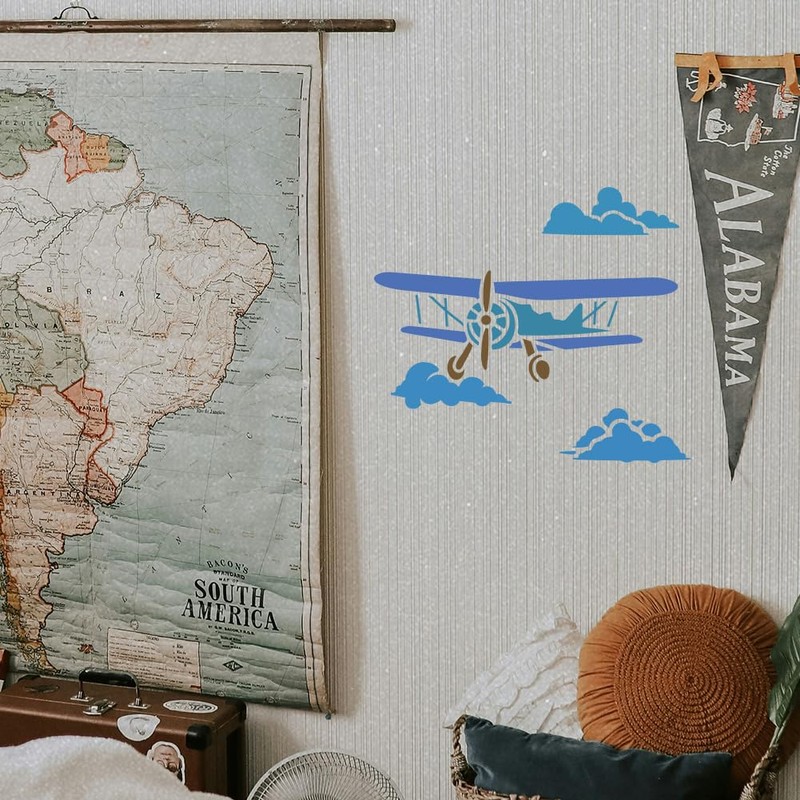 - Reusable Material: Retro aircraft and clouds wall stencil is made of premium plastic, washable and reusable, flexible and durable, not easy to break, did not bend or rip after being used multiple times