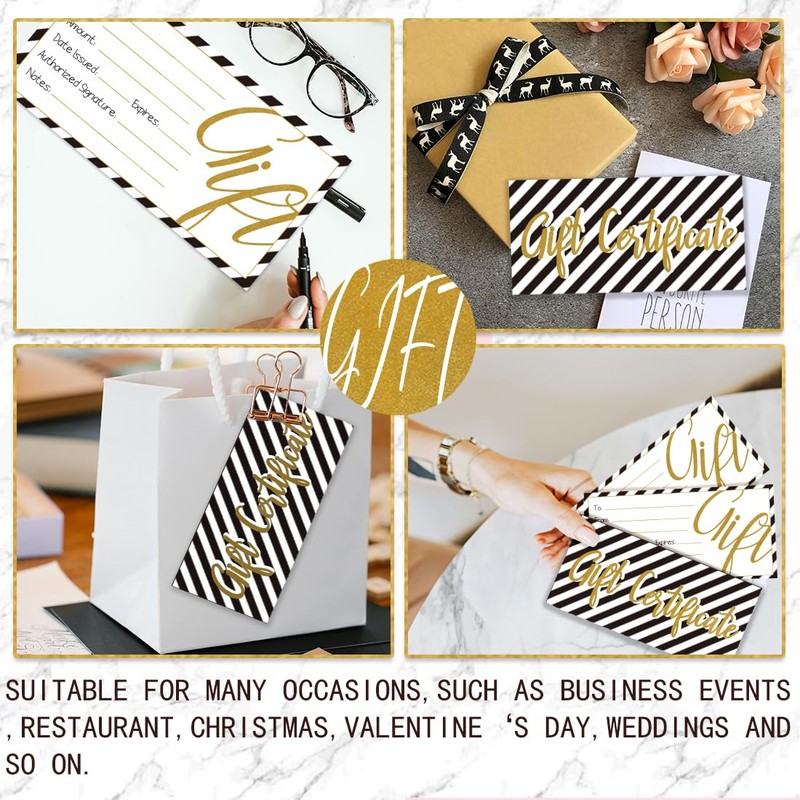 - Unique Design: The blank gift card certificate is printed on both sides of art paper, with the same theme of black and white stripes design on both sides, clear printing, exquisite and elegant, meeting your aesthetic and practical needs at the same time