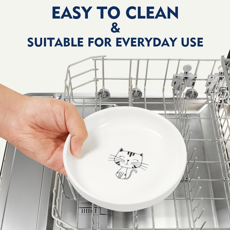 - 【WHISKER-FRIENDLY WIDE CERAMIC CAT FOOD PLATES】Our shallow and wide ceramic cat food bowls (5.8" diameter) help reduce whisker fatigue and make it easier for your cat to reach food—perfect for flat-faced breeds like Persians or British Shorthairs.