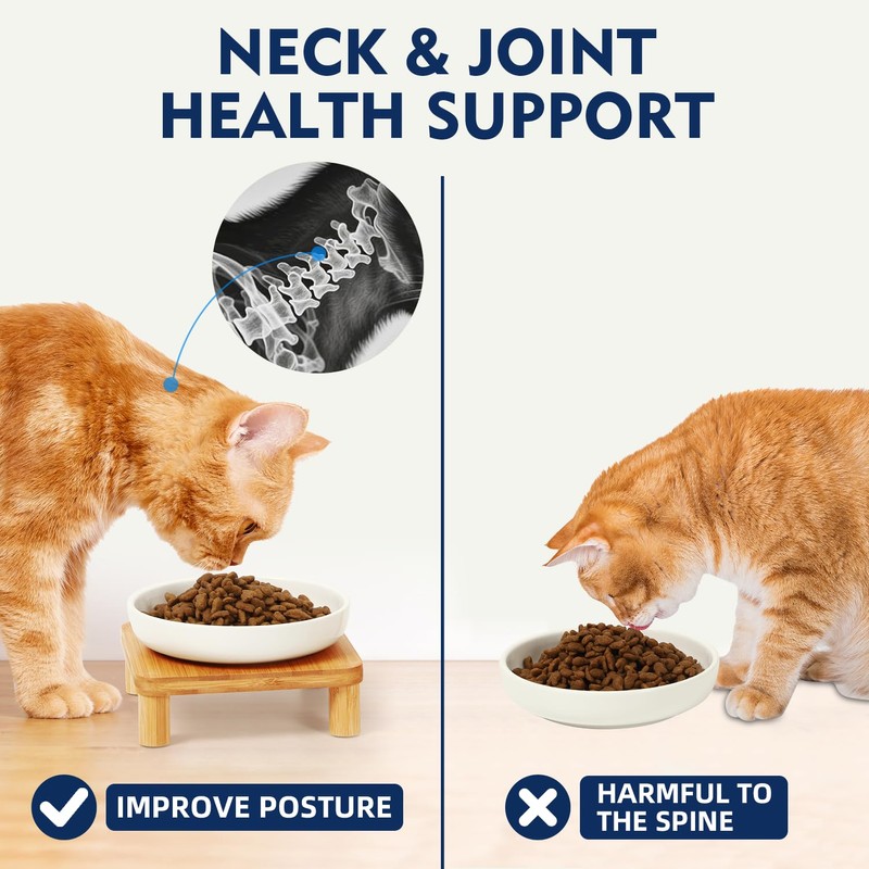 - 【SUPPORTS NECK COMFORT & HEALTHIER DIGESTION】This raised cat bowl design reduces strain on your cat’s neck and joints, helping improve posture and digestion. A great choice for senior cats or those who vomit after eating from flat cat bowls.