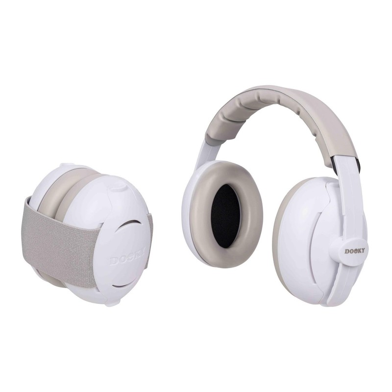 DOOKY Unisex Baby Ear Protection 2-in-1 Toddler Ear Protection, White and Grey, Universal Kids, White and Grey