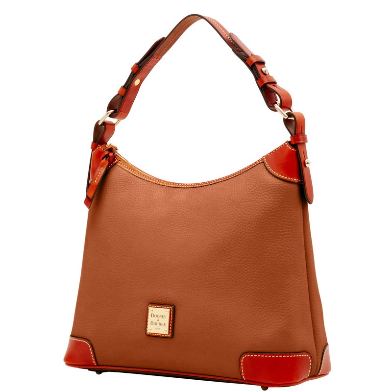 Dooney & Bourke Women's Hobo Shoulder Bag in Pebble Grain Leather, Large Handbag with Adjustable Shoulder Strap, Caramel