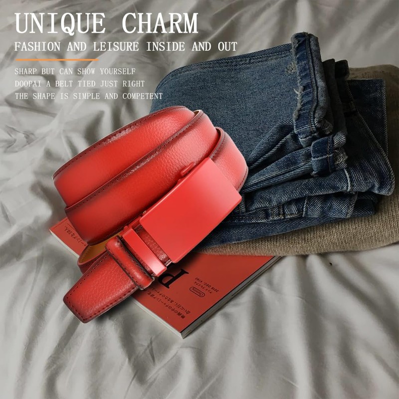 DOOPAI Men's Leather Ratchet Belt - Adjustable Slide Red Belt for Dress and Casual, Trim to Fit, Gift-Ready with Stylish Buckle (35mm)
