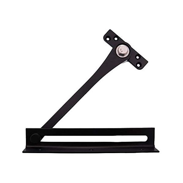 Door and casement limiting stay Use: Limiting the opening angle of a door to 90 degrees – Door & Casement Friction Stay Also acts as a hold open device by manually tightening the nut connecting the arm Product Information: Helps reduce risk of damage when the door is forcibly thrown open or the wind catches it. Excellent choice for open out doors, particularly in windy locations Very strong and simple in design, fit and function Material: Steel Fixings: Wood screws (included) Finish: Silver Fitting: Simply fix in a position at the head of the door that allows opening to the desired angle, fix in place and then adjust the friction at the pivot point
