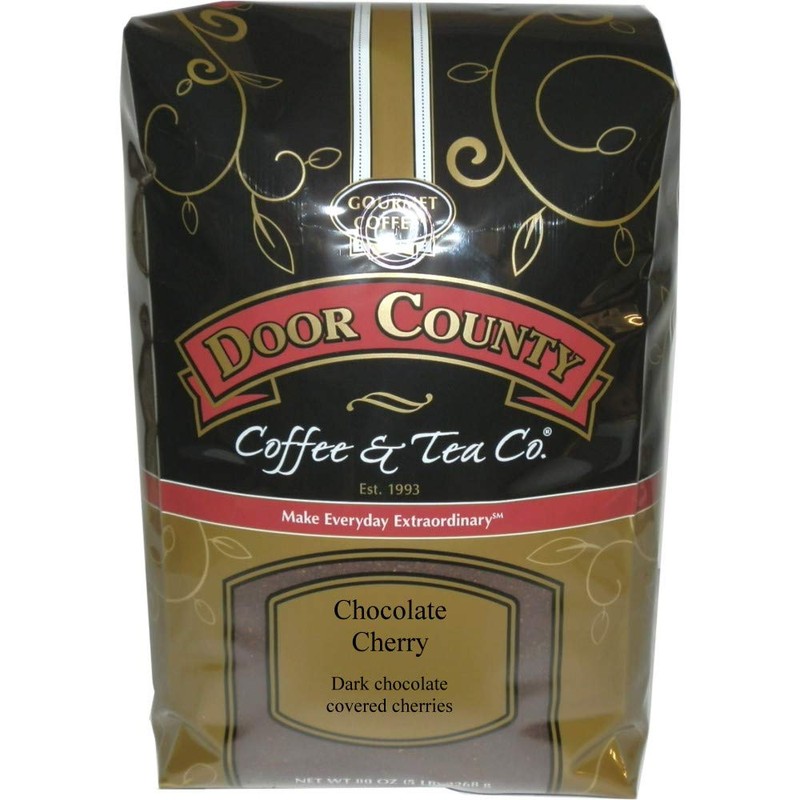Door County Coffee, Chocolate Cherry, Dark Chocolate and Cherry Flavored Coffee, Medium Roast, Ground Coffee, 5 lb Bag