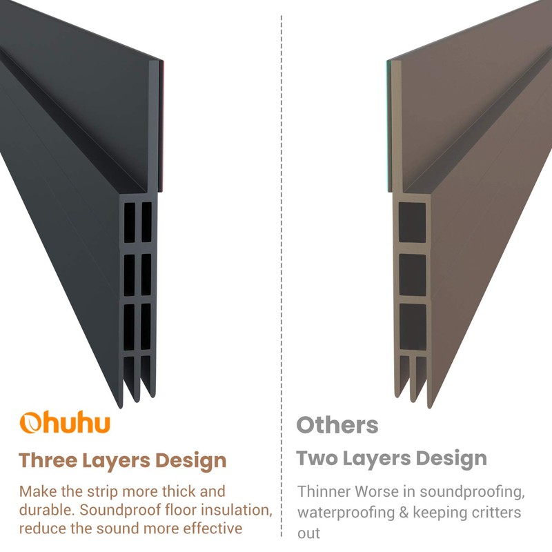 - DURABLE PERFORMANCE MATERIALS: This door sweeper is made from 3 layer premium materials silicone, wear resistant and flexible! Plus,this door draft weather stripping is non-toxic and super sticky. No damage on the floor and not easy to deform! A must have for home draft door stopper! The size of the door bottom seal strip is 2"W x 39"L, Just adjust the size for your need!