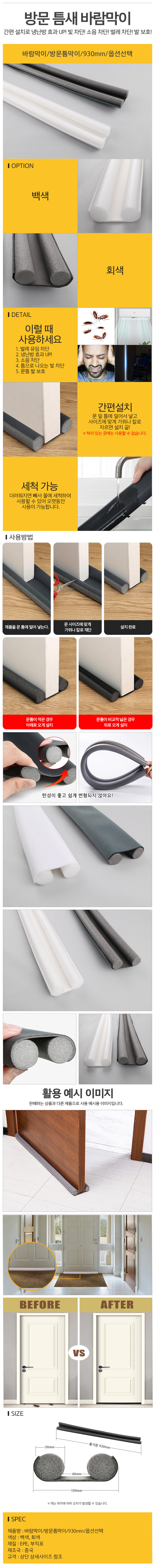Door Gap Seal Weatherstrip (Wind Blocker, 930mm) Grey 2ea