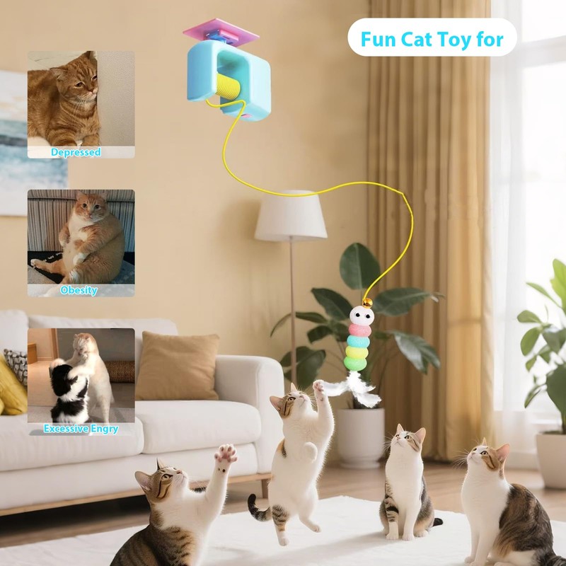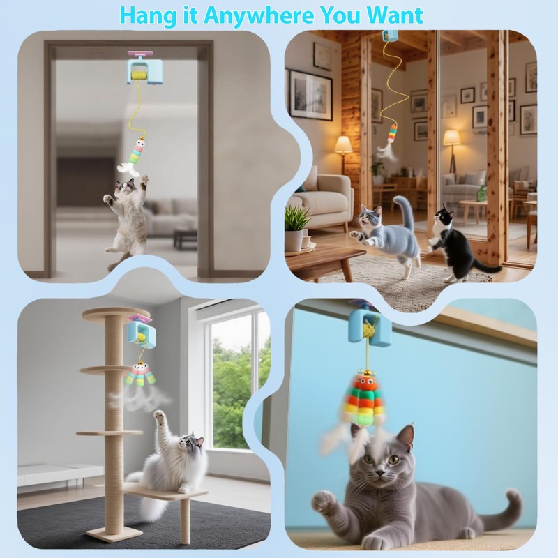 - Electronic Door Hanging Cat Toy: This cat toy for indoor cats is designed to simulate interactions between humans and cats. Simply hang it on the door frame, turn on the switch, with its electric random up and down motion, it stimulates your cat's curiosity and chasing instincts, providing endless fun