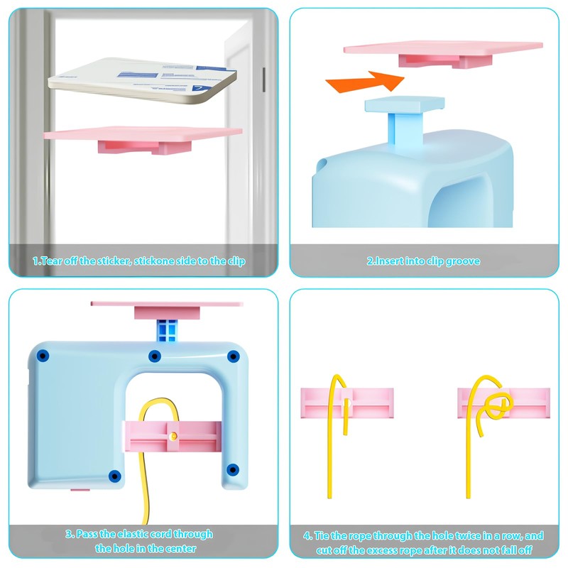 Remove the remaining adhesive backing on the buckle and attach it to a door frame or other surfaces