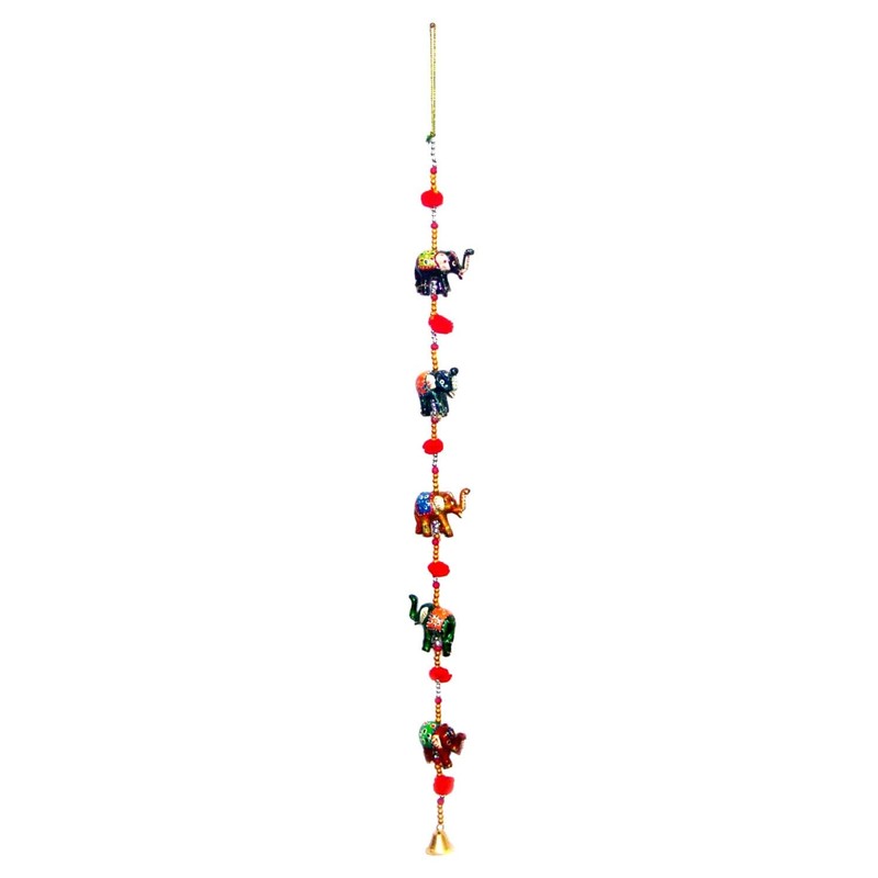 Door Hanging Decorative Five Hand Painted Elephant Stringed Together with Beads and Brass Bell