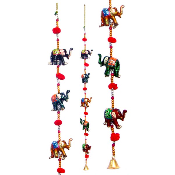 Door Hanging Decorative Seven Hand Painted Elephant Stringed Together with beads and Brass Bell