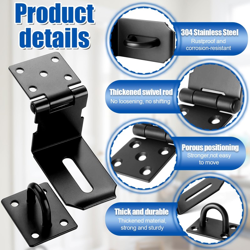 - High Quality: 90 degree hasp latch made of stainless steel, not easy to deform, strong and durable, high hardness, rustproof, ensuring quality and longevity