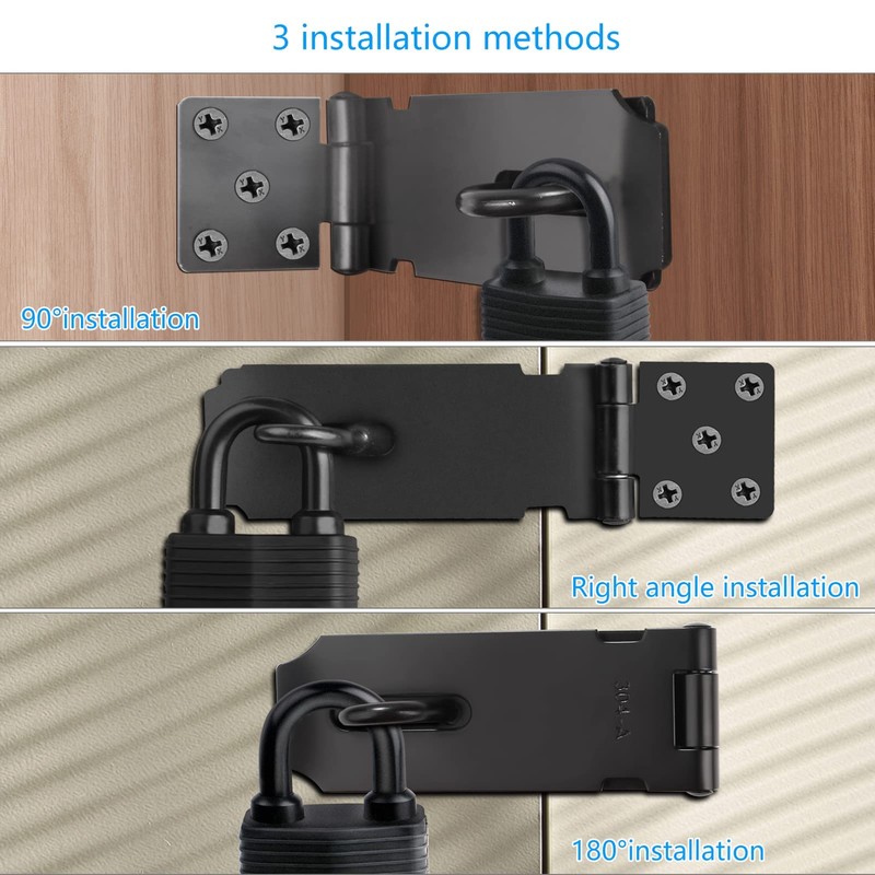 Door Latch Hasp with Door Padlock and Screws Heavy Duty Hasp and Staple with Padlock Stainless Steel Door Lock for Bedroom Garden Windows Shed Garage Cabinet Black