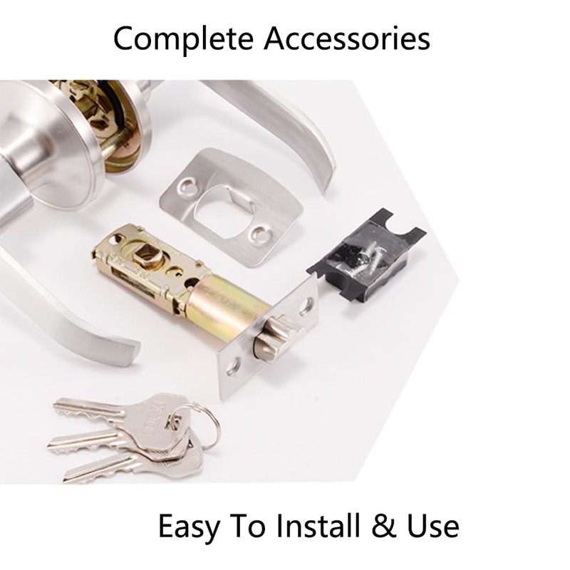 - 【Humanized Design】The surface of door lock is brushed and polished, making the surface rounded and smooth without hurting your hands, the simple and low-profile as well as modernized design can be integrated into various decorating styles; the knob long handle design makes it easy to hold, use, open and close; lock comes with 3 keys for easy sharing with your family and friends and as spare key you can use if you lose it.
