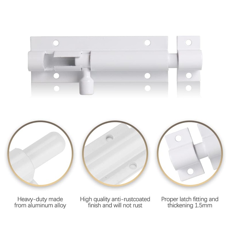 - 【Wide Use】These slide bolt locks can be used as a bathroom lock, shed lock gate, window lock, garage door lock, and garden gate lock. The door bolt could be perfect for multiple situations such as keeping pets safe and locking away valuables in the garden shed.