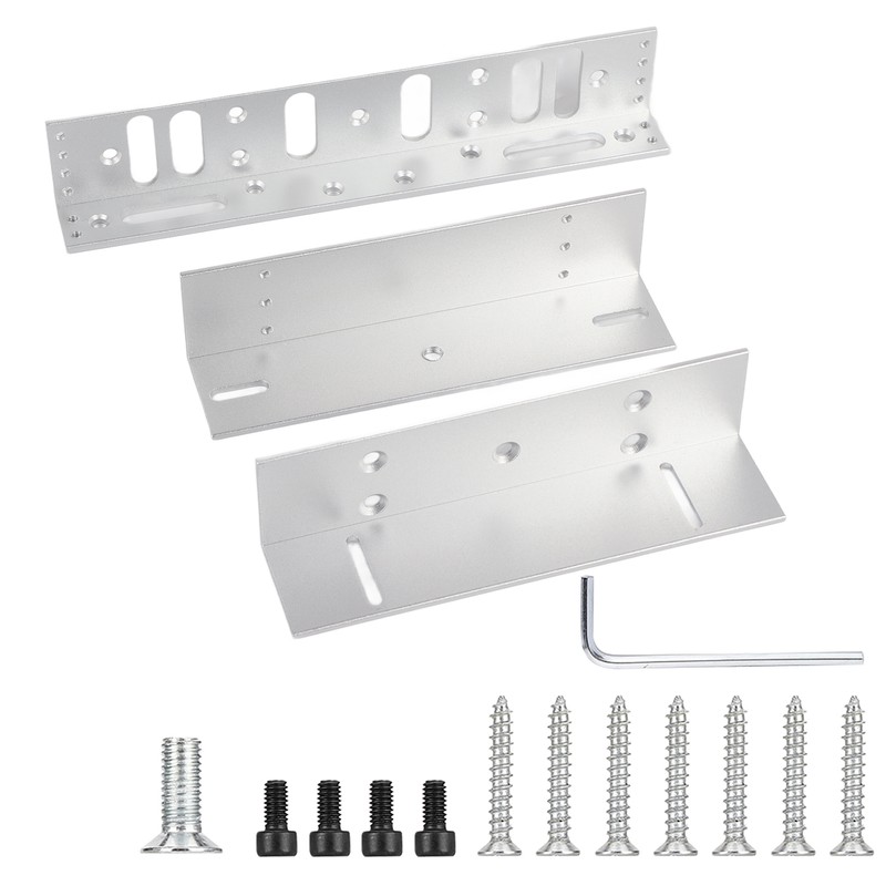 1、Made of high quality aluminum alloy material, anti-corrosion and high strength for maximum durability. 2、Special design, suitable for inward opening doors, long service life, safe and reliable. 3、Suitable for 280kg/617.3 lb magnetic lock, suitable for wooden doors, security doors, fire doors. 4、The best choice for access control, single door only needs one set of bracket, double door needs two sets. 5、Simple installation, no need complicated tools, convenient for using.