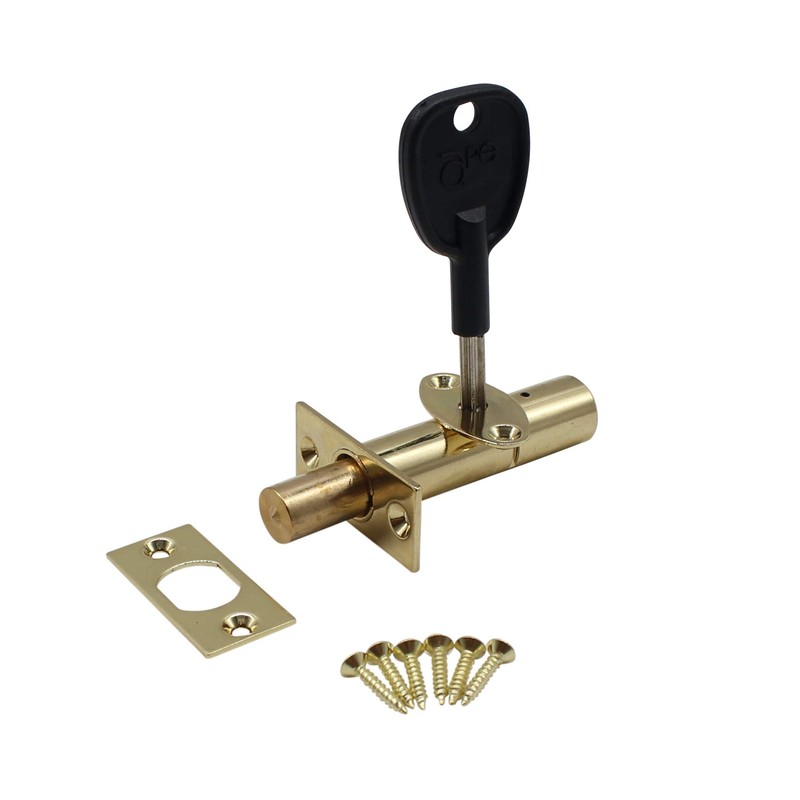 Door Mortice Rack Bolt | Polished Brass | Pack of 2 Bolts + 2 Star Keys