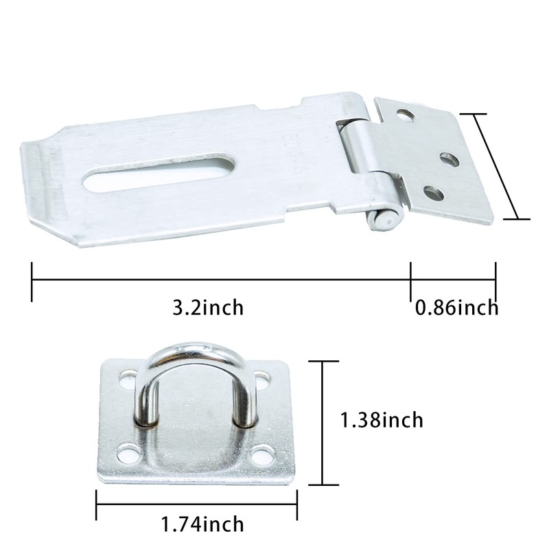 - Door Padlock Hasp: The length of the padlock hasp is 8cm/3.0inch, and the width is 3.8cm/1.5inch, this package includes 1 set padlock hasp and staple, and also includes screws.