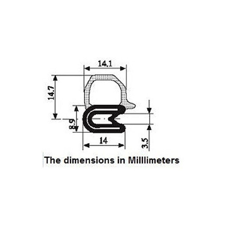 Door rubber strip small Bulb 9/16" Bulb diameter x 0.039"-9/64" x 35/64" U height (3 FEET)