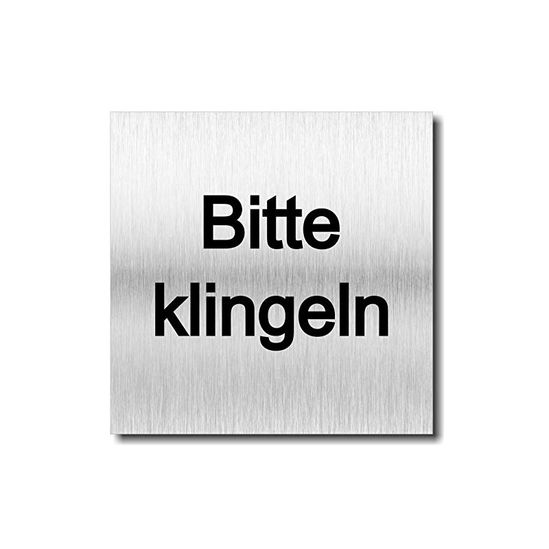 Door Sign with German Text "Bitte klingeln "Bitte klingeln 12 x 12 cm - 3 mm Aluverbund - Made in Germany - Item No. 2051