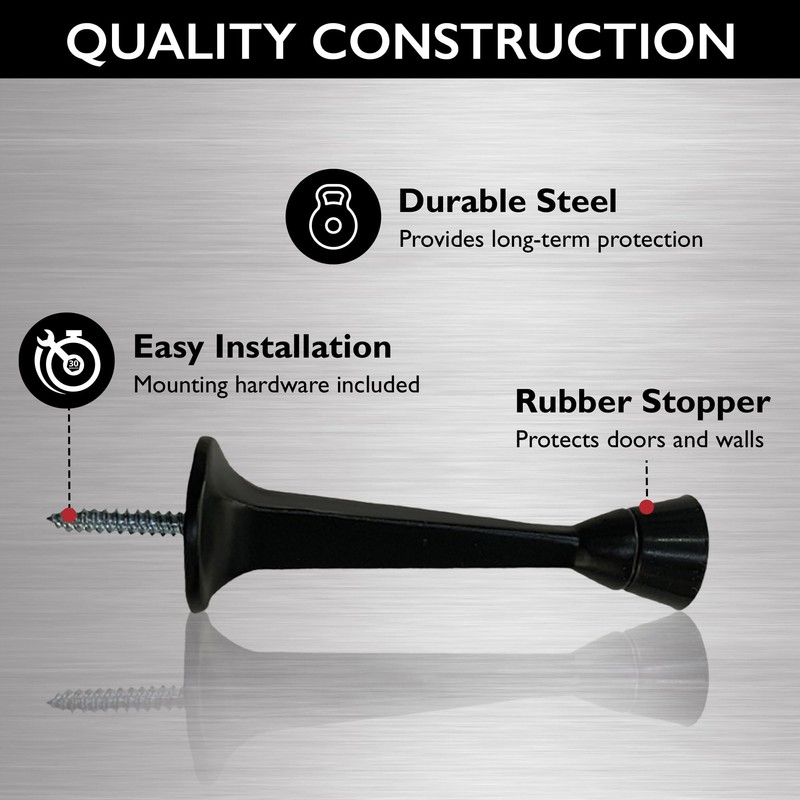 - Durable Construction: Heavy-duty door stoppers constructed with 100% steel to ensure durability while still being stylish in the sleek matte black finish