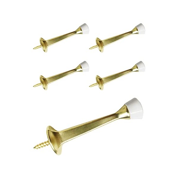 Door Stops 3 Inch Righd Wall Mounted with Rubber Tip Satin Brass, 5 Pack | HOWTOOL