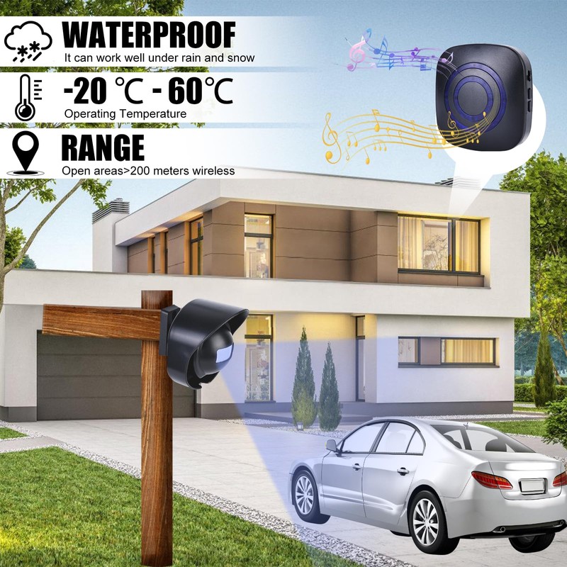 - Waterproof and dustproof: road alarms wireless outside weatherproof. Using waterproof material IP52, recessed waterproof groove, increased waterproof cover. This motion sensor doorbell is fully expandable, with plug and play sensors that can be set up in minutes.