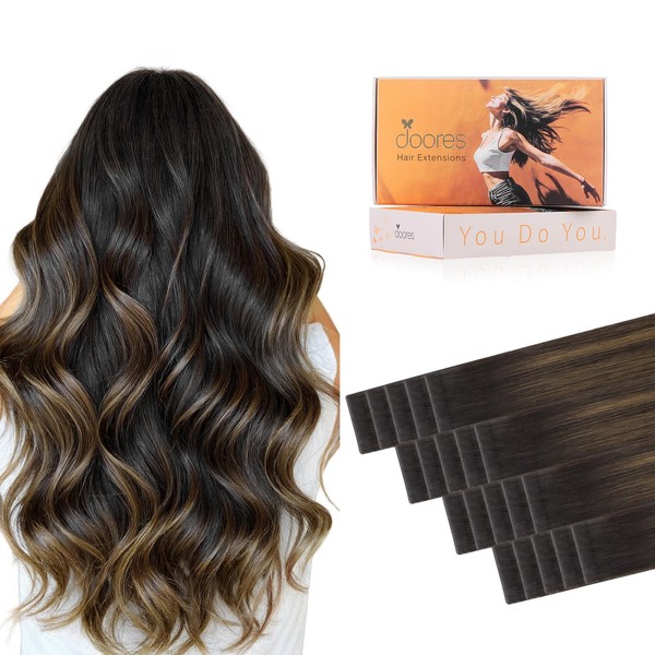 DOORES Genius Tape in Hair Extensions, Balayage Dark Brown to Chestnut Brown 18 Inch 50g/20pcs, Seamless Tape in Extensions Real Human Hair