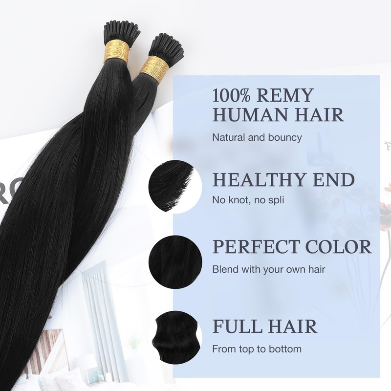 - 9A grade high quality Remy human hair - effective extending usage time: The Remy i-tip hair extensions are neither dry nor knotted, nor have a split end. 100% human hair extensions are more flexible and textured and allow different styling options. With proper care, the hair extensions can be used for up to 4 months.