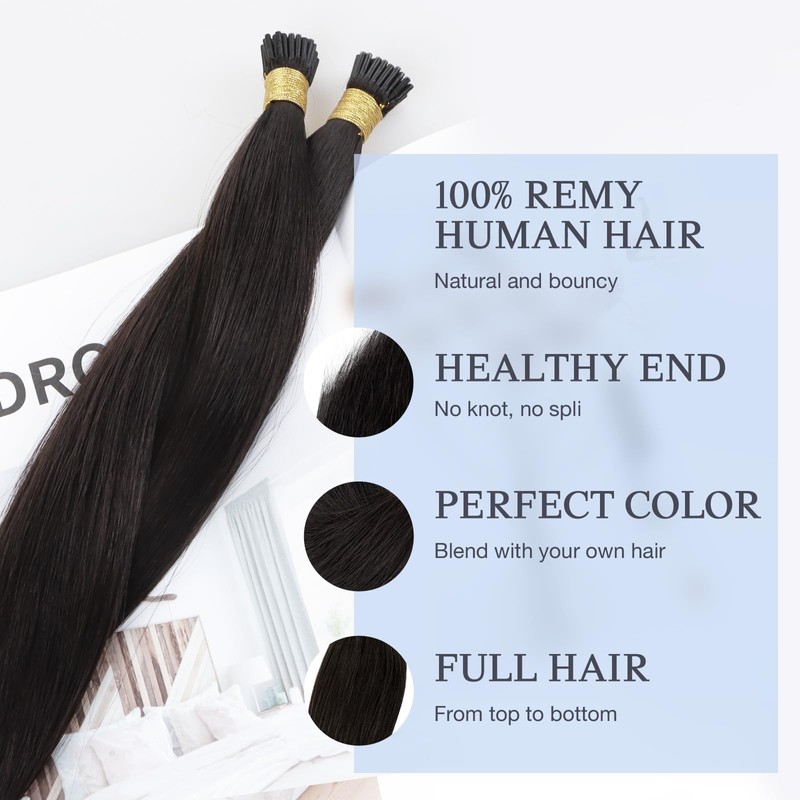 - [9A Grade High Quality Remy Human Hair--Effectively Extending Usage Time] The remy material's i tip hair extensions are neither dry nor knotted, nor does it have a split end, providing you with the most comfortable wearing experience. 100% human hair extensions are more flexible and textured, allowing for various styling options, but please note that the temperature of the curler should be controlled below 430°F. Proper care can keep i tip hair extensions in use for up to 4 months.