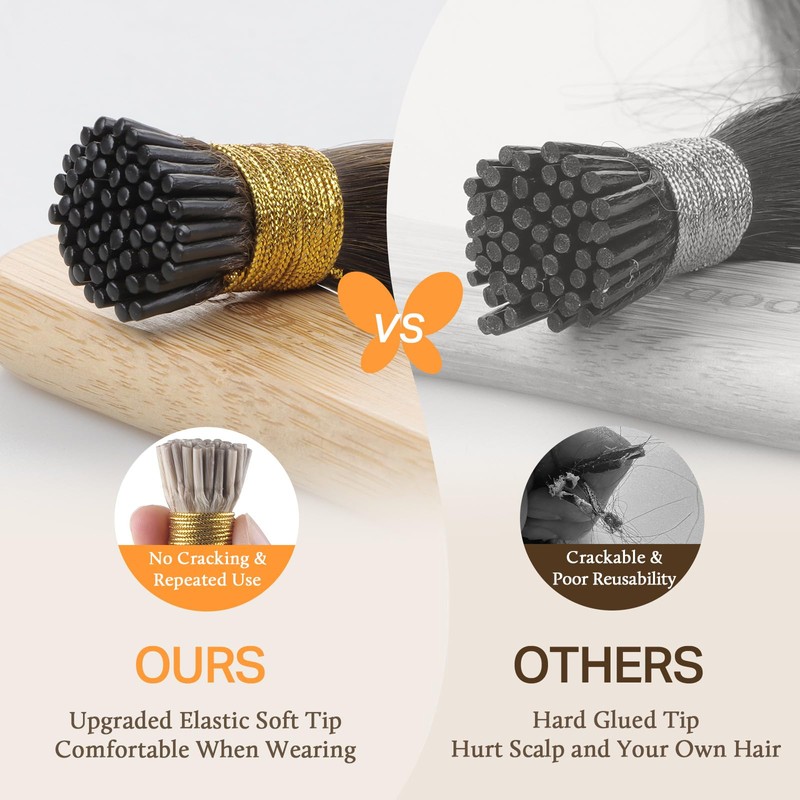 DOORES I Tips Hair Extensions Real Human Hair, Light Dark Brown 14 Inch 50g/100s, Cold Fusion Extensions for Women