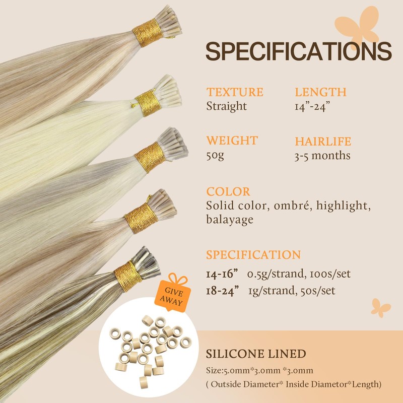 DOORES ITip Human Hair Extensions, Light Brown Highlighted Medium Blonde 50g/100s 16 Inch, Straight Cold Fusion Real Hair Extensions