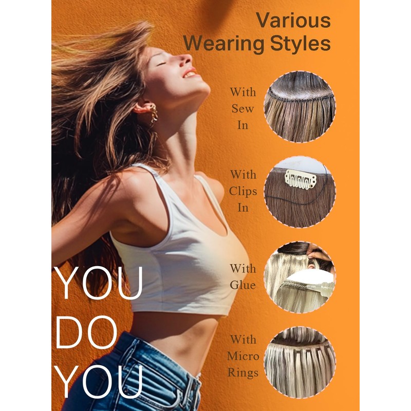 - [Multiple Ways to Wear the Weft Hair Extensions]DOORES sew in weft hair extensions can be applied in different ways. Directly sew in, with clip in, glue or micro beads. You can increase your hair volume according to your needs. The weft is light and soft that it fits perfectly to your scalp, not easy to find. Easy to Install: making the installation process quick and convenient. Human hair weft should be installed by a professional stylist to ensure the best results.