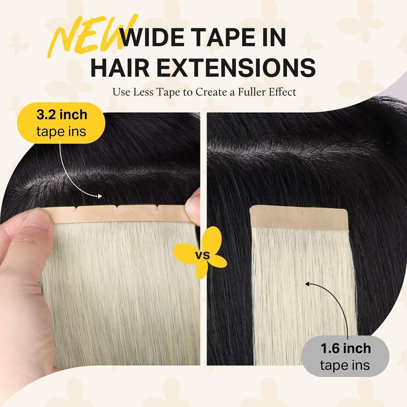 - DIY Cuttable Hair Extensions Real Human Hair: Our wide tape in extensions are 3.2 inches wide and weigh 0.5g, 1pc is equivalent to 2pcs classic tape in hair extensions. The three small notches on the edge of the weft, you can trim to the suitable width along the notch on the edge of the weft according to your preference. Strict craftsmanship ensures that the hair remains strong even after cutting the width.