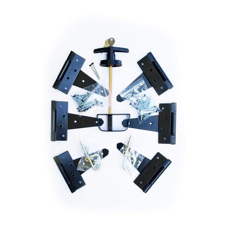 Doors & Door Hardware Shed, Gate double door hardware kit: T handle lock, 6" T hinges, Barrel bolts