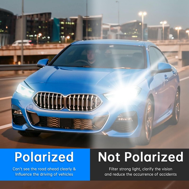 • 【Better Technology】:Functional components adopt polarization technology, blocking harmful UV rays and dazzling reflected lights from buildings or car rears. It eliminates visual fatigue or discomfort to enable clear vision even under extreme sunlight. --- Safe Driving for Car