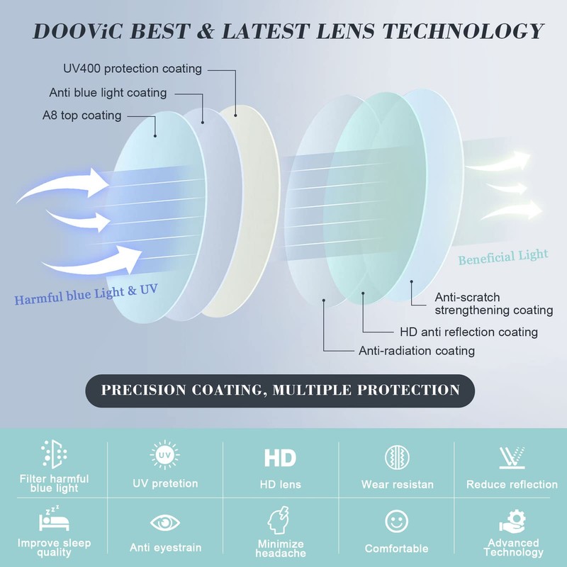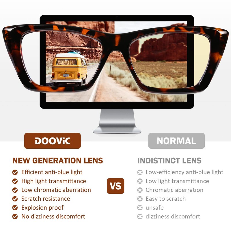 - 【PREMIUM LENSES】- DOOViC blue light blocking readers use new generation premium lenses. Explosion-proof, High Definition, Restore true colors and Durable. Bring you a better vision.