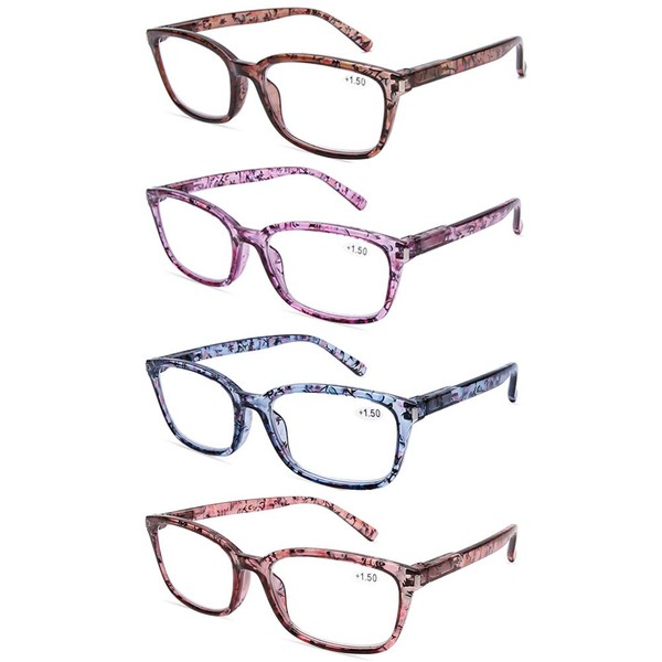 DOOViC 4 Pack Computer Reading Glasses Blue Light Blocking Anti Eyestrain Spring Hinge Stylish Readers for Women 4.00 Strength