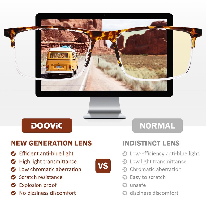 - 【PREMIUM LENSES】- DOOViC readers use professional premium blue light blocking lenses. Explosion-proof, High Definition, Restore true colors and Durable. Bring you a better vision.