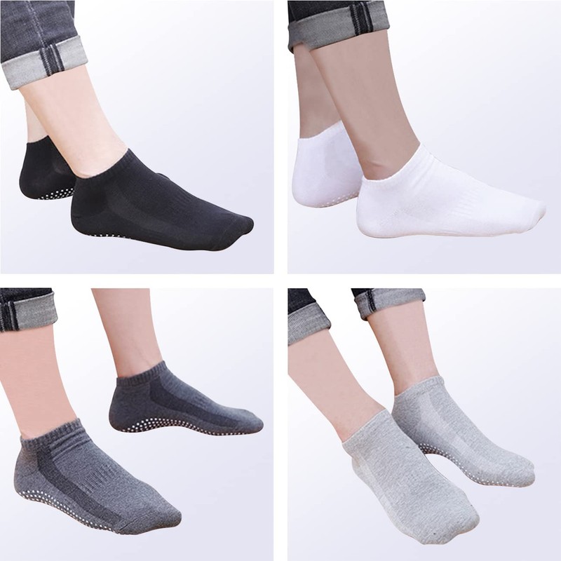 - Anti-slip: The bottom of unisex socks has reasonably distributed anti-skid dots to provide better grip to improved stability and balance, which will prevent you from slipping while walking or running and give you more security. Grips are made of soft and flexible silicone, won't make you feel the grips dots on the bottom when you are standing on tile surfaces.