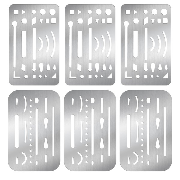 DOPENSPI 6PCS 2 Styles Stainless Steel Erasing Shields, Eraser Shield Eraser Template Drawing Template Shield Drafting Tools Metal Erasers Shields Tool for Mechanical Drawing Engineering