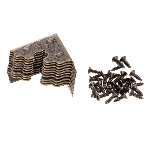 Dophee 三辺のコーナープロテクター コーナー金具 アンティーク調 ボックスコーナー DIY/かばんのコーナー保護 パーツ材料 金具 手作り 装飾 25x25x9mm 10枚入り