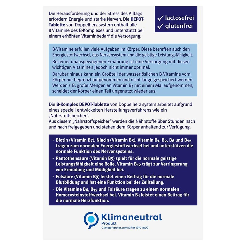 - High-dose combination of all eight B vitamins. DEPOT tablets for the supply over many hours